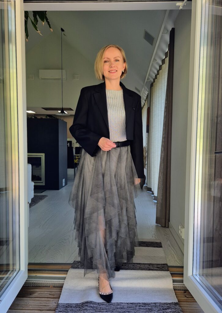 No mutta mitenkäs muutenkaan. Harmaa tyllihame voisi olla kelpo osanen keikka-asuun. Ehkäpä Elli Haloollakin on joskus ollut tylliä yllä. Jos ei ole, niin minusta hänelle sopisi oikein hyvin. Vähän repaleiset helmat ja niin edelleen.