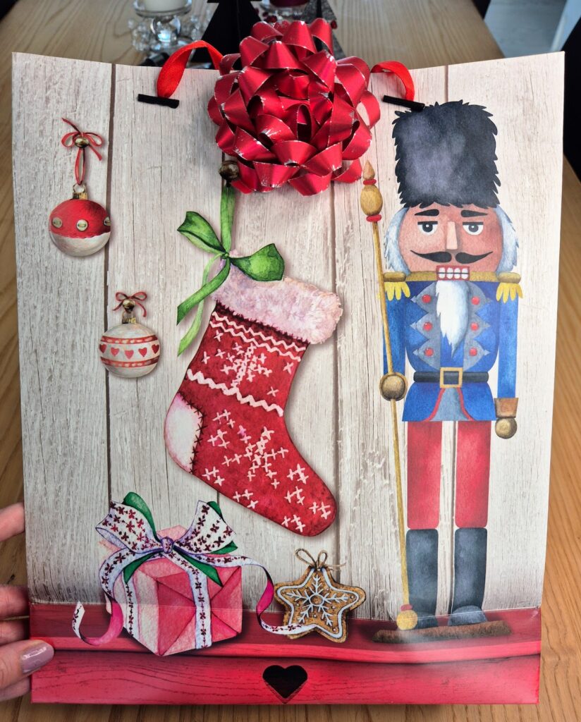 Tässä jää myös lahjan saajalle mahis joku päivä lahjoittaa lahjakassi eteenpäin, kun se ei ole teipin ja niitinreikien peitossa.