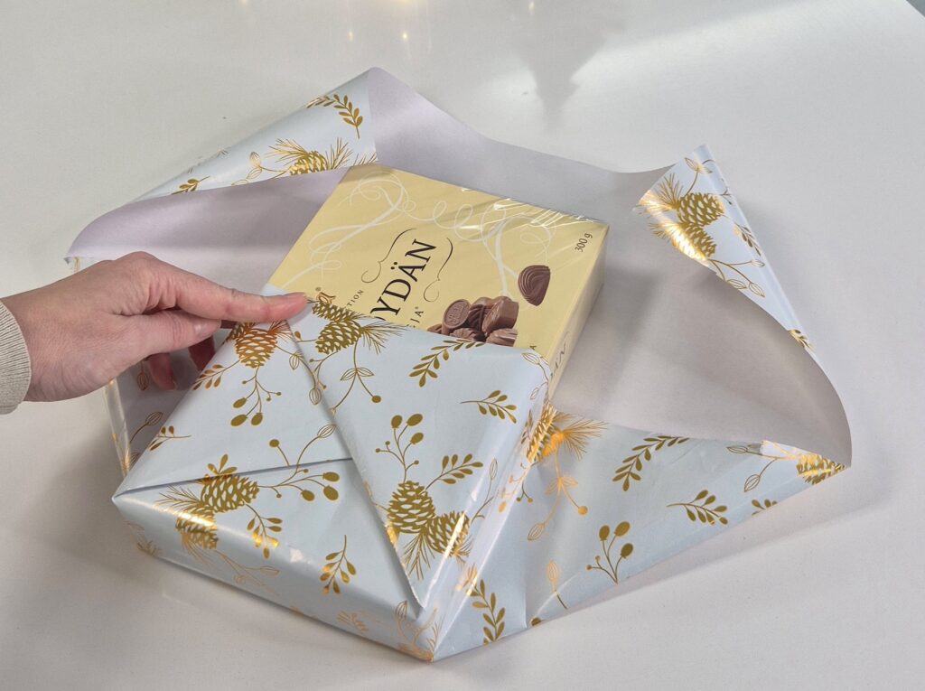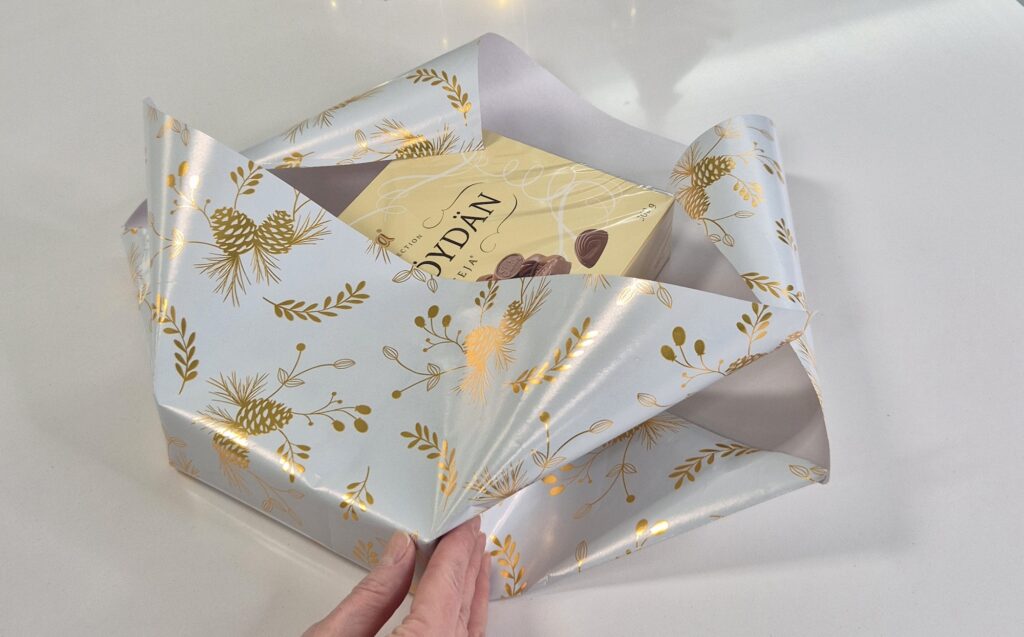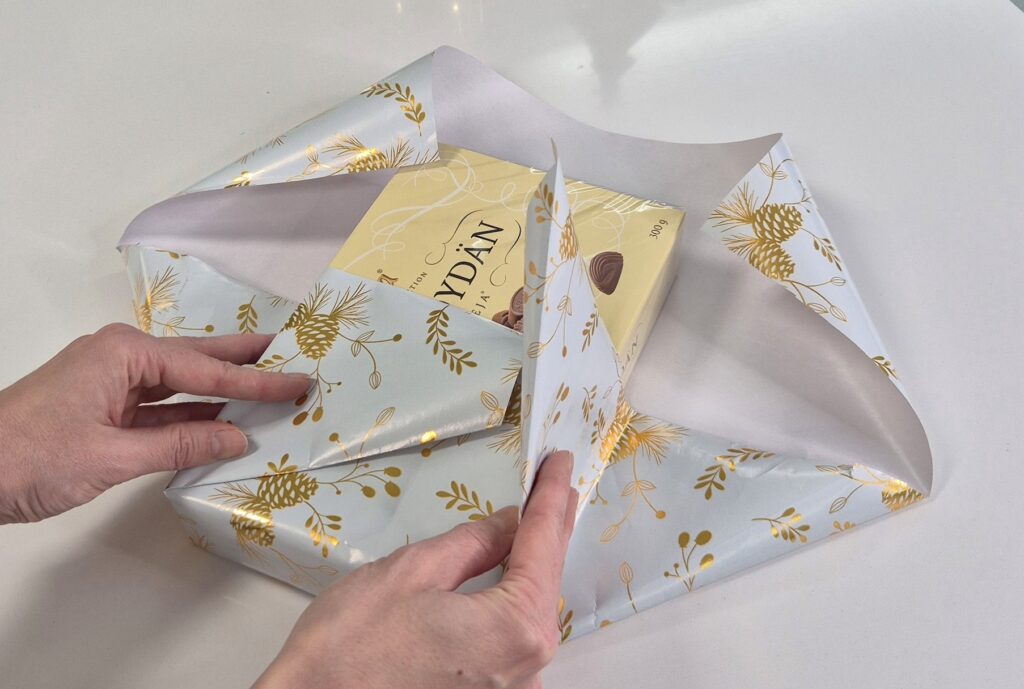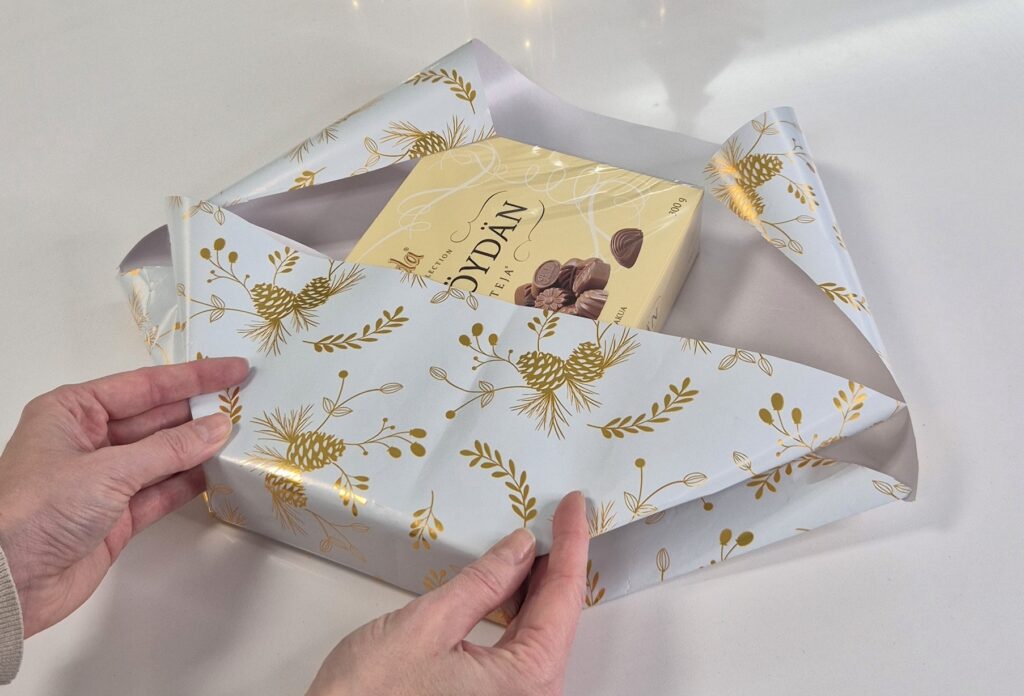1. Paperin pitää yltää lahjan päältä kiinni.