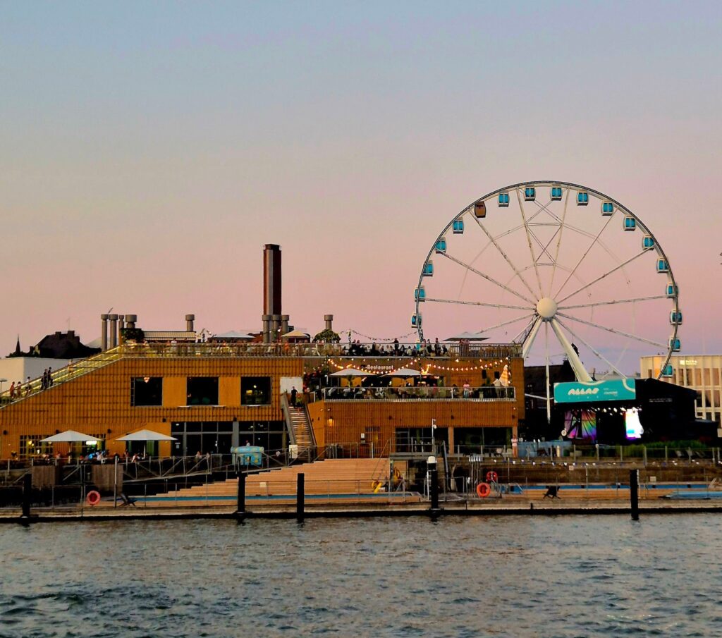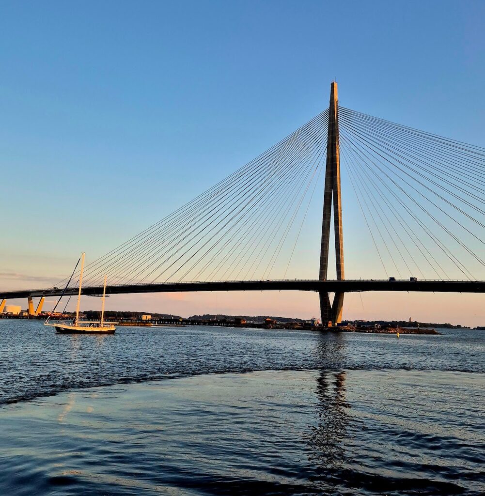 Helsinki vesiltäpäin katsottuna oli kaunis. Upea auringonlasku värjäsi taivaan, ja olihan siinä matkan varrella vaikka ja mitä katseltavaa: siltoja, kuumailmapalloa, joutsenia ja risteilyaluksia.
