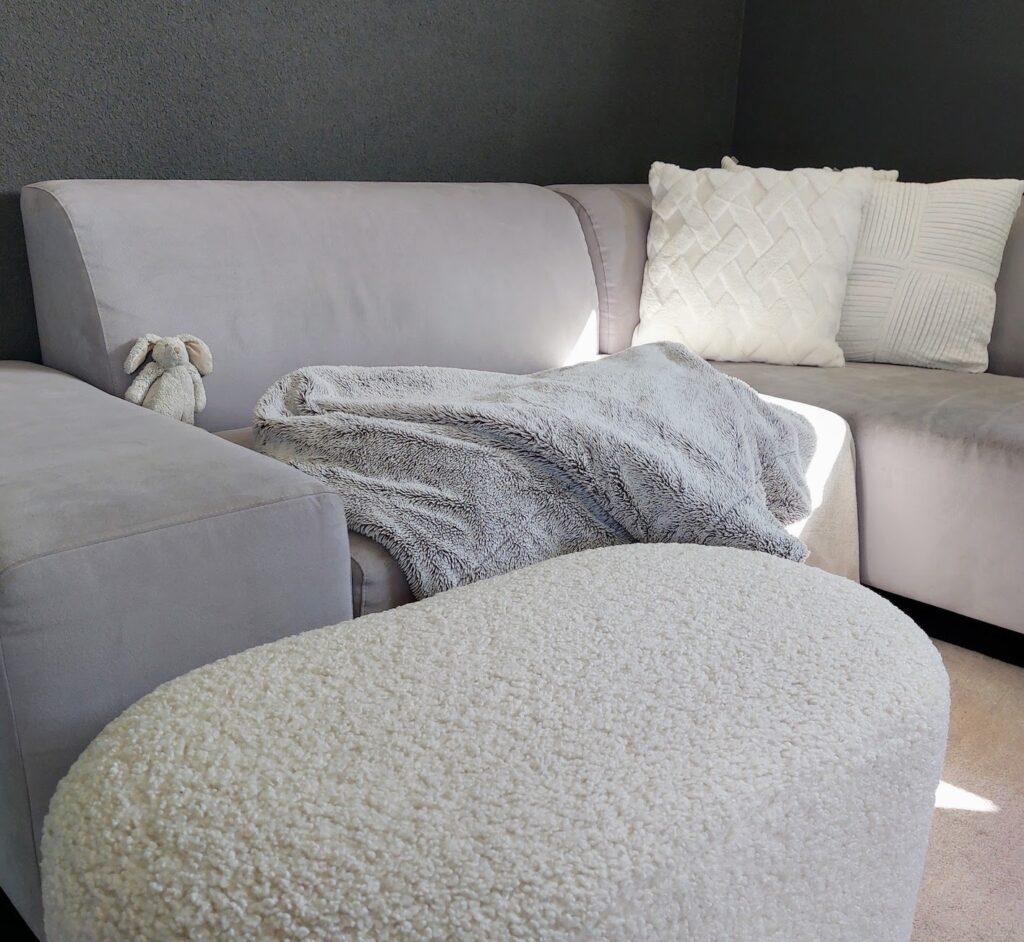 Myönnän, että en mielelläni enää esittele tämän tilan harmaata sohvaamme. Se on kovan käytön seurauksena menettänyt muotoaan sekä kaipaisi päällysteiden pesua. En vain ole selvittänyt miten se tehdään. Pitäisi, tiedän. Lapset saavat leikkiä tässä huoneessa ja toisinaan se on hävityksen kauhistus.