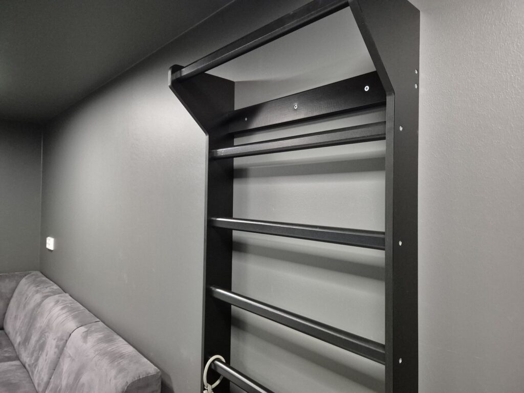 Autotallista ei ole tarvetta ottaa kuvaa. Samat perustelut kuin juniorin huoneesta. Autoja ja romua, voinette kuvitella. Mutta, yksi kuva salahuoneestamme. Tätä harva meillä käynyt on nähnyt. Tilava huone on piilotettu taloomme, joka oli aikanaan vähän tarkoitettu miesluolan tapaiseksi, mutta ajan saatossa näin ei ole käynyt.. lapset käyvät siellä leikkimässä ja pientä kehonhuoltoa voi harjoittaa kuminauhoilla, puolapuilla ja painoilla. Ehkäpä joku päivä tällekin keksitään muutakin käyttöä.
