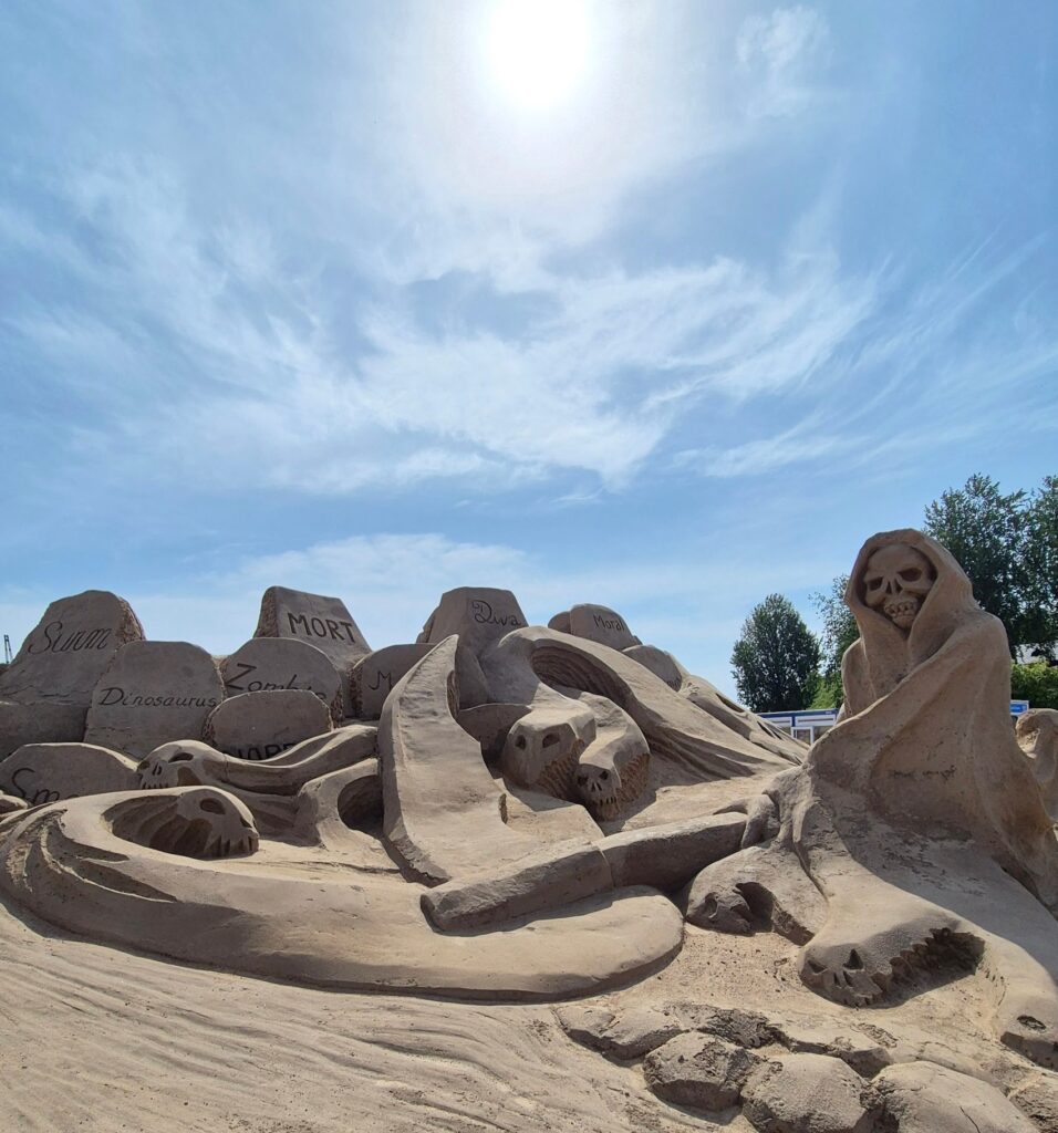 Teemana taisi olla jonkinlainen kauhu, kun kaikenlaisia örkkimörkkejä, aaveita ja Mörkökin oli hiekkaan veistetty. Toki myös Raipe Helminen, mutta en tiedä kuuluiko hän tähän teemaan. (silmänisku)