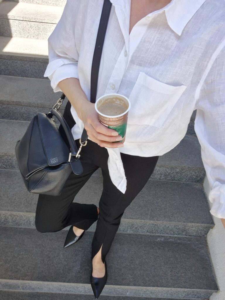 Käytän aktiivisesti kesällä tätä omaa mustaa nahkalaukkuani, joka on sopivan kokoinen monenlaisten päivien menoihin. Tämä on Loewe Puzzle koossa pieni. Tähän menee sopivasti muutama ekstratavara enemmän, verrattuna pienempiin laukkuihini.