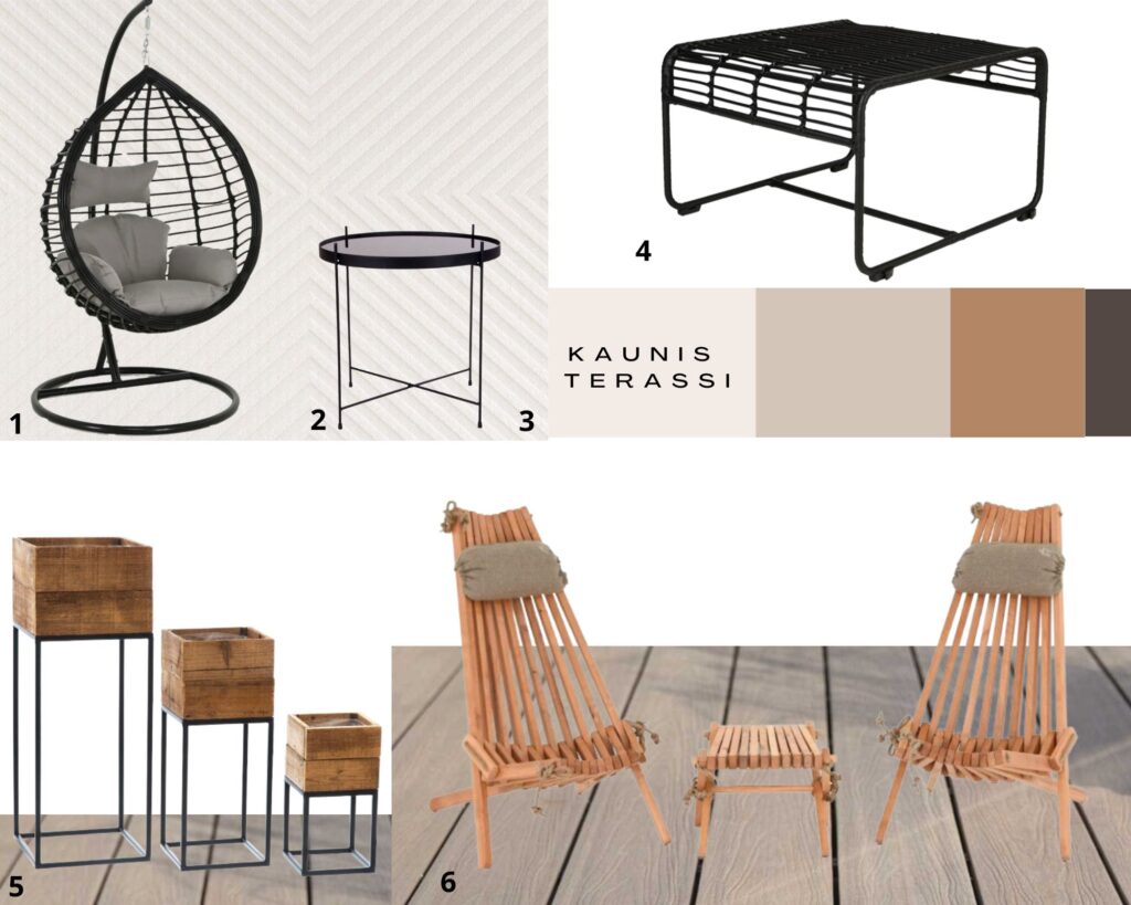 2. Hei ihania kalusteita ja somisteita! Juuri miehen kanssa puhuttiin, että terassimme kaipaa ”jotakin”, esimerkiksi nojatuolit, sohvaryhmän…jotain., Nyt siellä on ainoastaan pitkä pöytä ja tuolit sekä kaksi isoa ruukkua, joissa on kesäkukat. Niin, ja grilli. Hiukan ankeaa. Tästä sain monta kivaa vinkkiä!