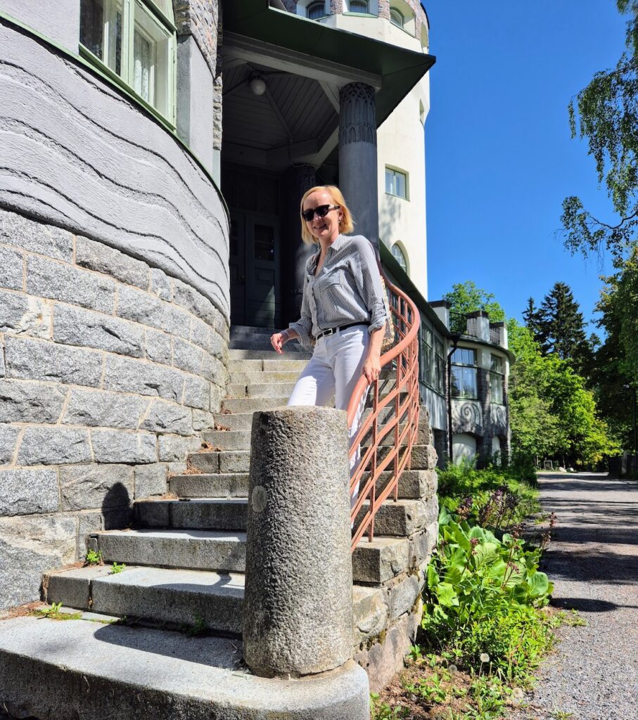 Töissä ja tapaamisissa tyylini on aika neutraali. Sanoisin. Valkoinen pellavapaita ja mustat housut noin kaikessa yksinkertaisuudessaan olivat usein yllä.