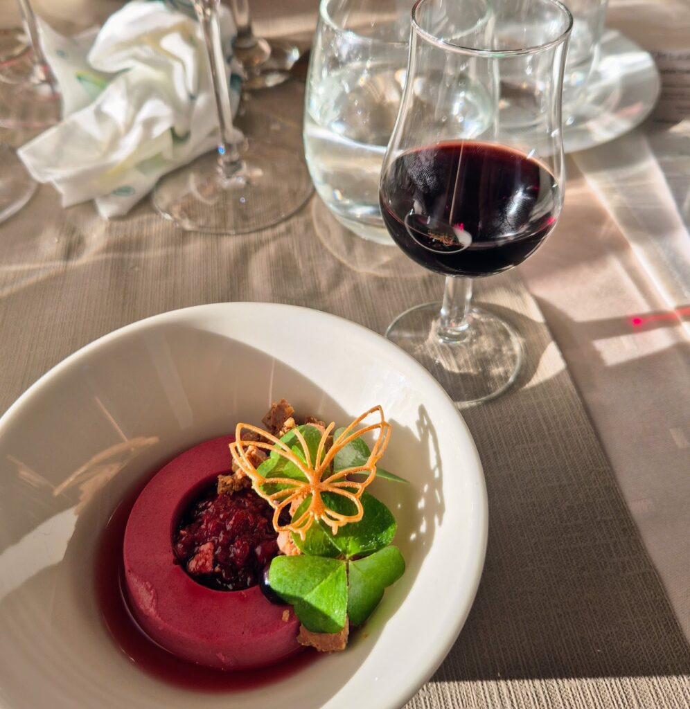 Ruokailu oli Wanhalla Kasinolla ja ilta meni kyllä niin rattoisasti. Oodi Saimaalle -yllätysmenu toi viisi ruokalajia pöytään ja kaikki maistuivat taivaalliselle. On hauska syödä ruokaa, jollaista ei itse osaisi valmistaa vaikka mitä tekisi. Otin myös viinipaketin, jolloin joka ruokalajille sai juuri sopivan viinin. Tämä on kyllä sellainen taitolaji, jota aina ihailen. Miten se ruoka ja viini tukevatkin toisiaan niin hienosti. Tiedätte varmasti miltä tuntuu, kun ruoka ja viini ei sovi yhteen.
