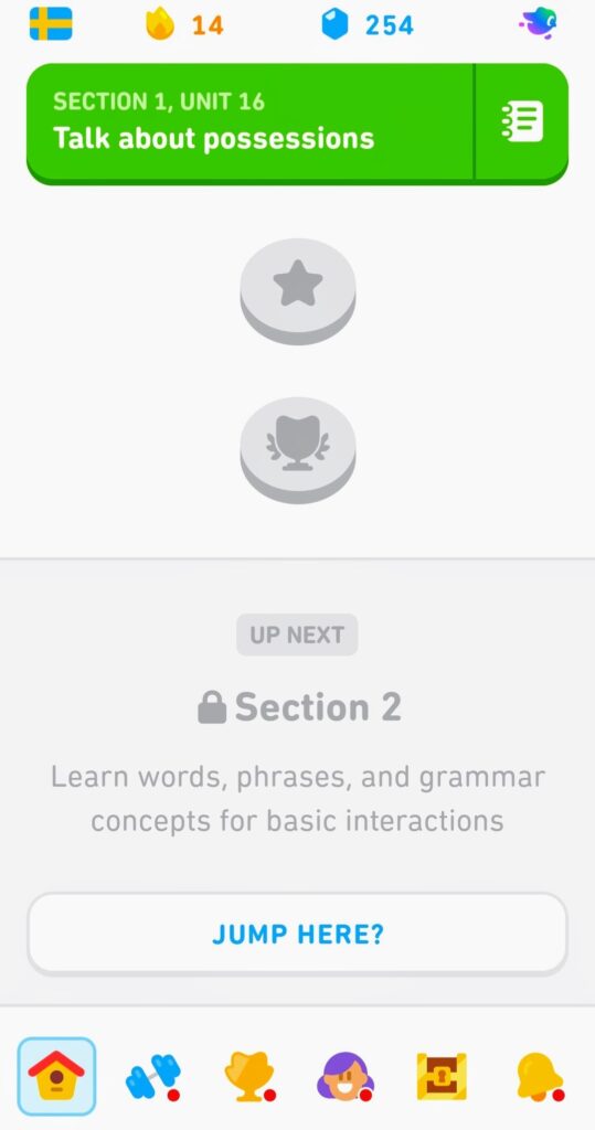 Joskus tuli Duolingoa käytettyä, en kyllä muista mitä yritin sen kautta harjoitella. Ihan mielenkiinnosta voisi terästää myös omaa ruotsinkieltä tuota kautta, eikä tekisi varmasti pahaa englanti-englantikaan 😀