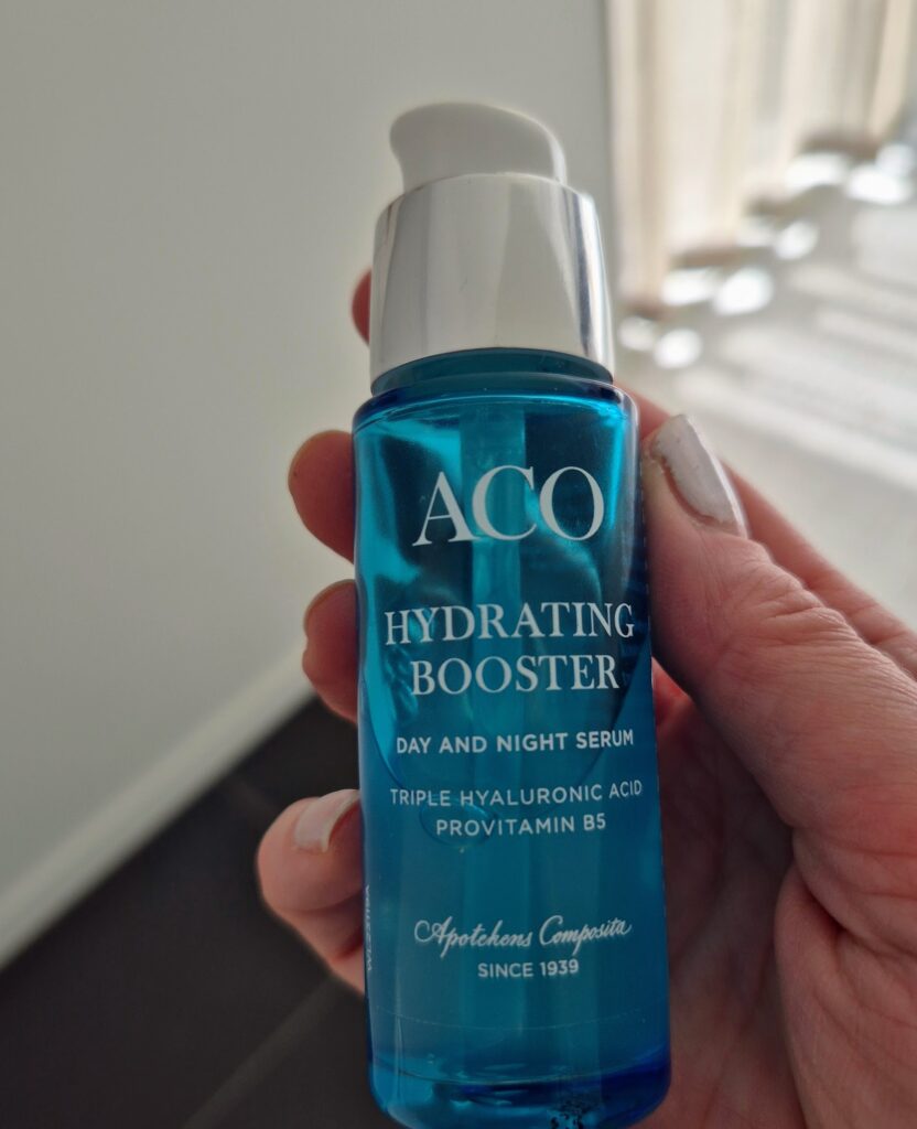 Tämän hetken seerumini on * Acon hydrating booster, joka on ensimmäistä kertaa käytössäni. Se lupasi kosteutusta ja sitä se on antanut. Mukava, mieto tuoksu ja tuntuu hyvältä iholla. Erityisesti suihkun jälkeen, kun iho tuntuu olevan numeroa liian pieni. Acoa löydät apteekeista sekä esim. Lykolta.