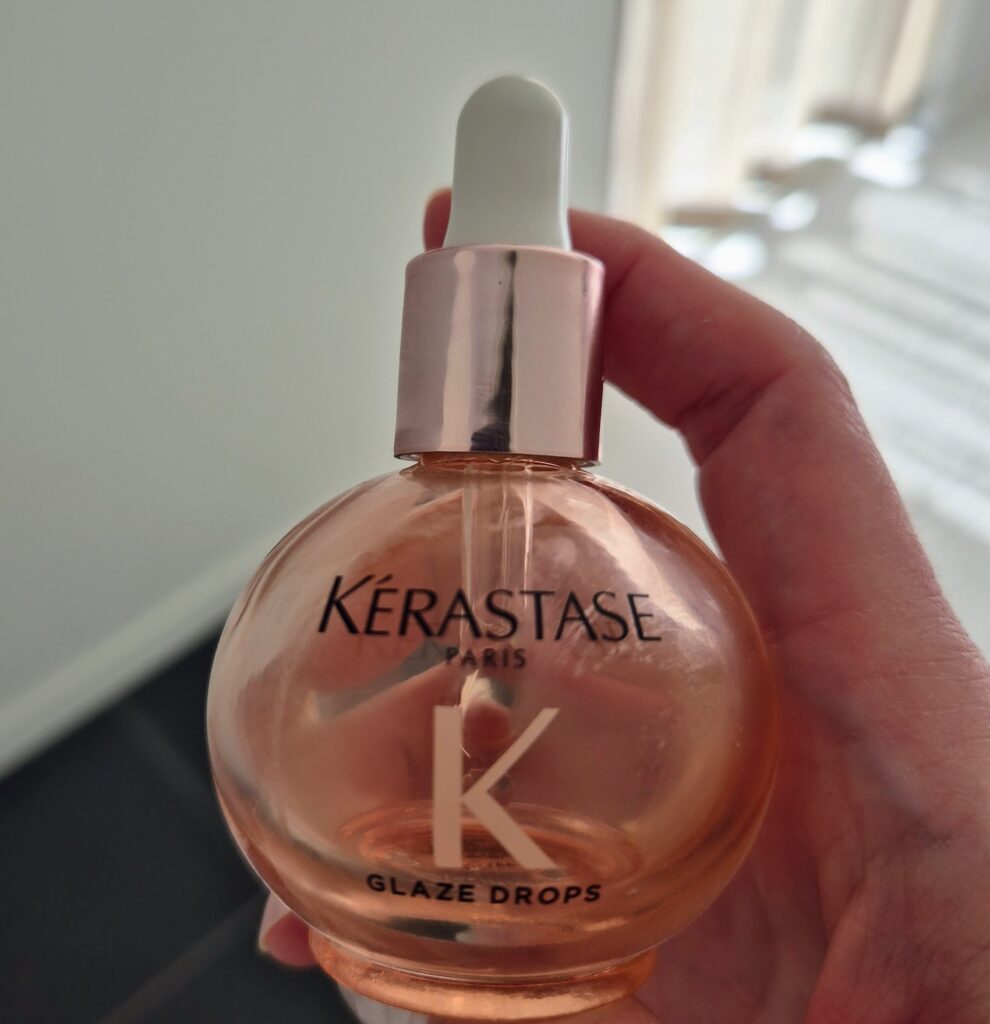 Ykkösjuttu, jota en itse asiassa vaihtelekaan, on Kerastasen hiusöljy. Loistoaine. Ai että. Suihkun jälkeen oma, värjätty tukkani voi latvoista olla kuivahko (suoristusraudalla saattaa olla asian kanssa tekemistä), mutta näen ihan silmissä miten hius voi paremmin, kun laitan pienen määrän tätä * Kerastasen Glaze Drobs hiusöljyä. Tiedän, että sitä suositellaan pitkille hiuksille, mutta voi voi, yhtä hyvin toimii kuiville ja lyhyille hiuksille. Onneksi.