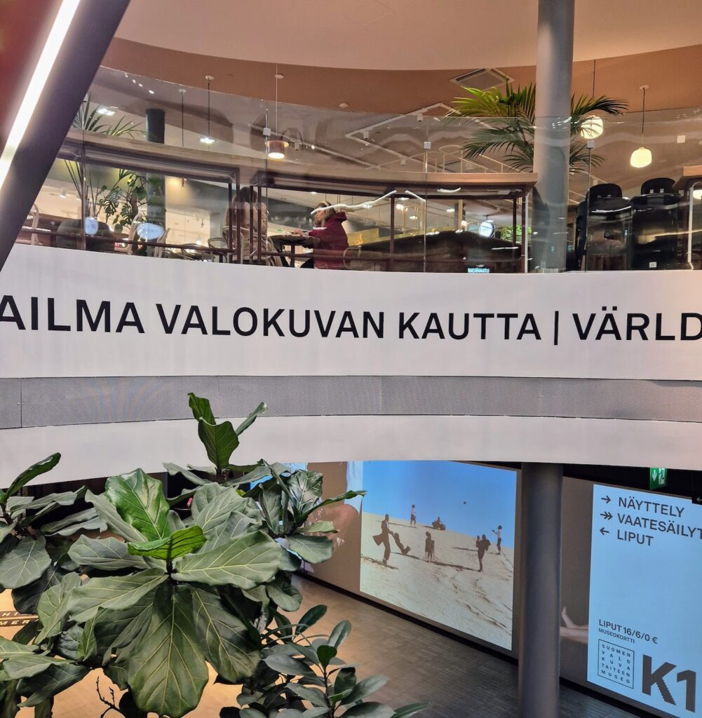 Viimeisimpänä kohteena minulla oli Suomen Valokuvataiteen Museo K1. Olin siellä aiemminkin käynyt, joten muistin sen olevan hyvän kokoinen ja sopi jo pikkaisen kävelystä ja seisoskelusta kipeytyneille jaloilleni. Ihan parhaita kenkiä en saanut aamulla, köh, päivällä jalkaani, kun edellisillan riennoissa korkolappu lähti omille teilleen paremmista kengistäni. Kakkoskengät vähän uuvuttivat jalat pitkässä käytössä.