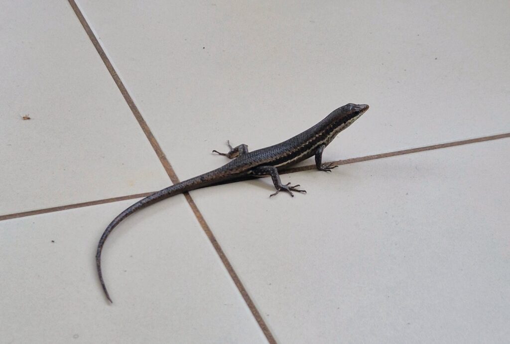 Asunnossamme Mahella pyöri erivärisiä gekkoja eikä siinä mitään. Hyödyllisiä pikkuotuksia, jotka syövät inhat ötökät. Ainut vain, kun tällainen vilahtaa silmäkulmassa seinällä tai yöllä spurttaa keittiönpöydältä muovipussit rahisten minun edestäni, niin saan aina pienimuotoisen slaagin. Tänä aamuna viimeksi yksi möllötti tiskialtaan pohjalla säikäyttäen minut.