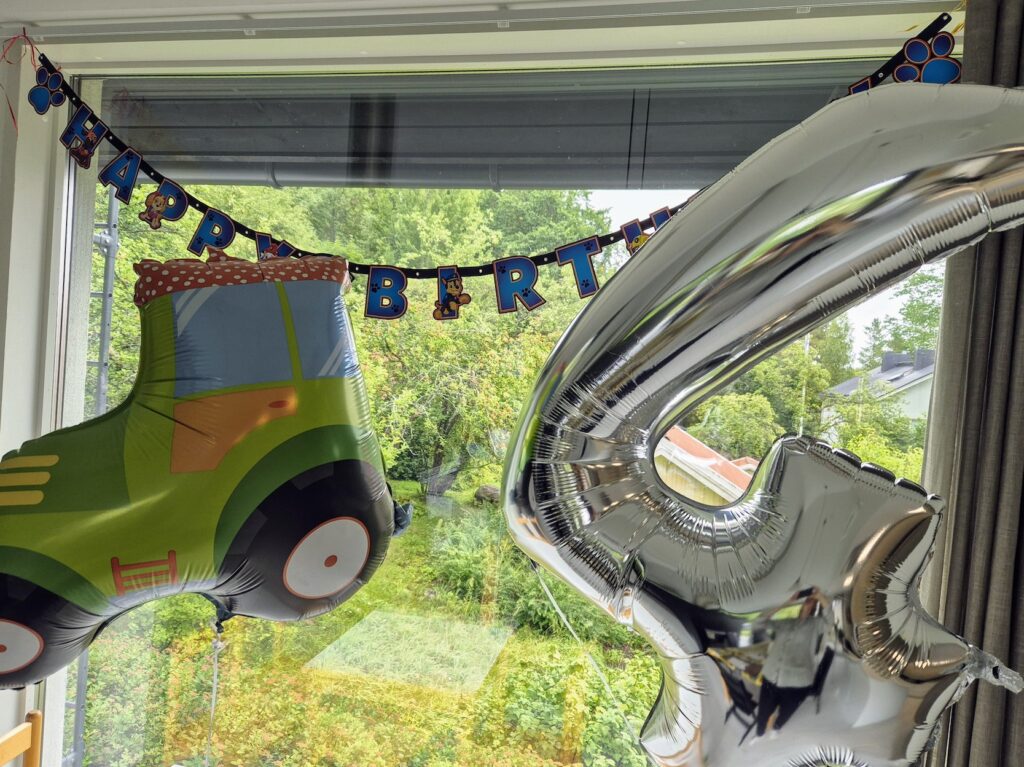 Jotenkin ne omat aivot aina höyryävät ennen h-hetkeä, kun yrittää muistaa etukäteen sitä ja tätä, mutta juhlien ollessa päällä mieli on vain kiitollinen. Ihana nähdä pienen synttärisankarin riemu kaikesta hulinasta ja siitä, että häntä juhlitaan tänään.