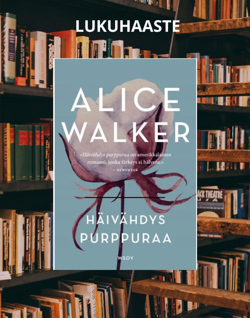 Kuuntelen toki paljon äänikirjoja ja erityisesti silloin, kun käsiä ja silmiä tarvitsee johonkin muuhun hommaan. Mutta lukeminen on mitä ihaninta hommaa ja suosittelen vähintään pari kirjaa vuodessa jokaisen lukemaan. Jos ei keksi kirjaa, niin osallistu vaikkapa tällaiseen kirjahaasteeseen, joka rajaa valikoimaa huomattavasti. Sitten vain antaa kirjan yllättää itsensä, niin kuin minulle kävi Häivähdys purppuraa teoksen parissa.
