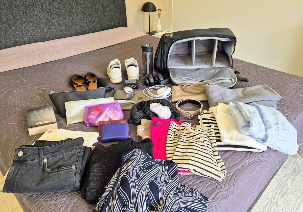 1. Katoin jo Instagramissa, että anteeksi MITEN tuohon reppuun voi mahtua noin paljon vaatteita ja tavaraa? Herttinen! 🤯 Yhteenkään miun reppuun ei mahdu noin paljon tavaraa, eikä kengät mahdu pienemmässä matkalaukussakaan kulkemaan mukana lyhyillä reissuilla. 🥲 Upea innovaatio kieltämättä – lokerot, taskut ja kaikki. 😍
