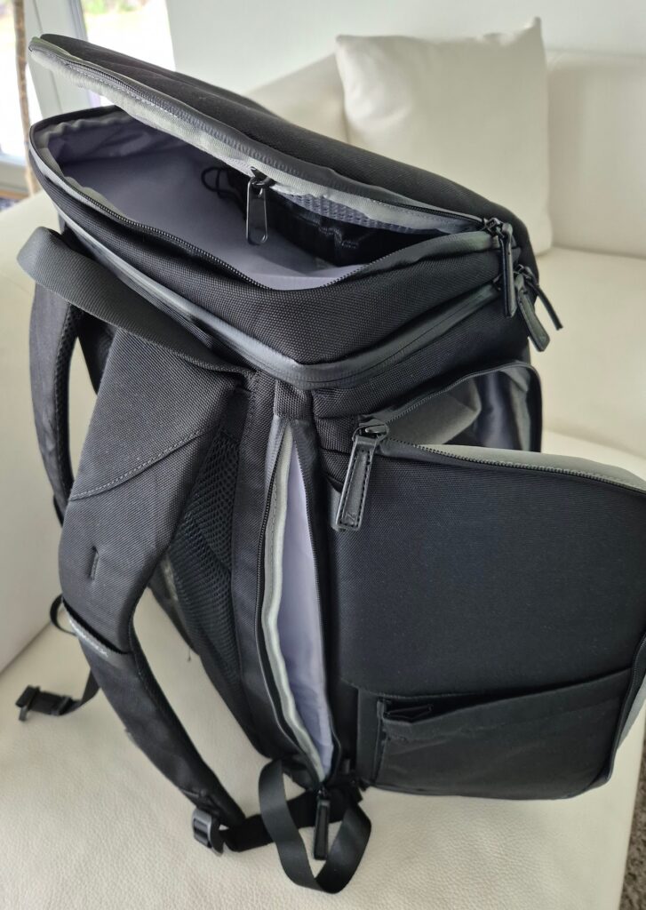 Jos miettii haluaako repun vai matkalaukun lyhyeen reissuun mukaan, niin repun hyvä puoli on se, että molemmat kädet ovat koko ajan vapaina liikuttaessa. On helppo hypähtää metroon, kulkea portaita, selata kännykästä reittiohjeita jne. Tässä Organizer repussa on mahtavaa se, että repun voi ottaa toiselle olkapäälle ja avata repun sivusta etsiessä jotain tarvitsemaansa. Se löytyy näppärästi ilman, että joutuu ottamaan reppua selästä pois.