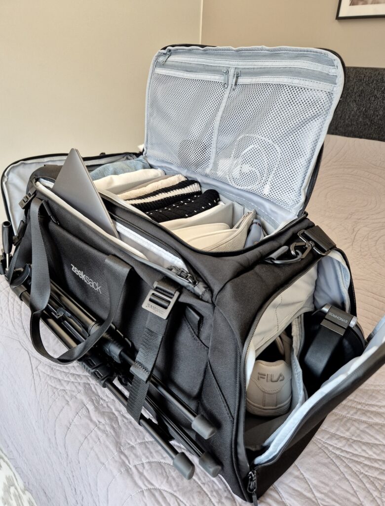 Vaikka aloitin tämän postaukseni loistavasta repusta, niin käytän nyt lopuksi tilaisuuden myös kehuakseni Zeeksackin The Weekender duffelilaukkua, eli tilavaa putkilaukkua, jota olen tämän syksyn käyttänyt. Se on kerinnyt parille kotimaan reissulle mukaan ja koska tämä minun versioni vetää 50L sisäänsä, niin kerrankin olen pärjännyt pelkällä laukulla viikonloppureissuni. Todettakoon, että yleensä 1-2 kestokassia on kulkenut vedettävän matkalaukun päällä – ei enää.