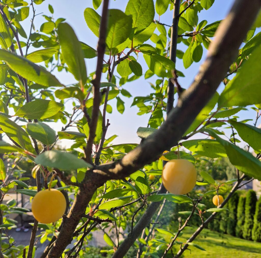Ja aamut eivät ala ilman kahvia. Kahvin tippuessa hain muutaman luumun pihapuusta. Meillä on hassuja vaaleita luumuja, odotin siis violetteja silloin aikoinaan, kun tämä puu alkoi tuottaa hedelmiä. Hyvänmakuisia nämäkin. Kun olin kahvin ja pari palaa leipää saanut kurkusta alas olikin jo aika patistaa koululainen koulutaipaleelleen sekä valmistella junioria hoitopäivään. Tällä viikolla hänellä on neljä hoitopäivää, joten perjantai menee kotona hänen kanssaan.