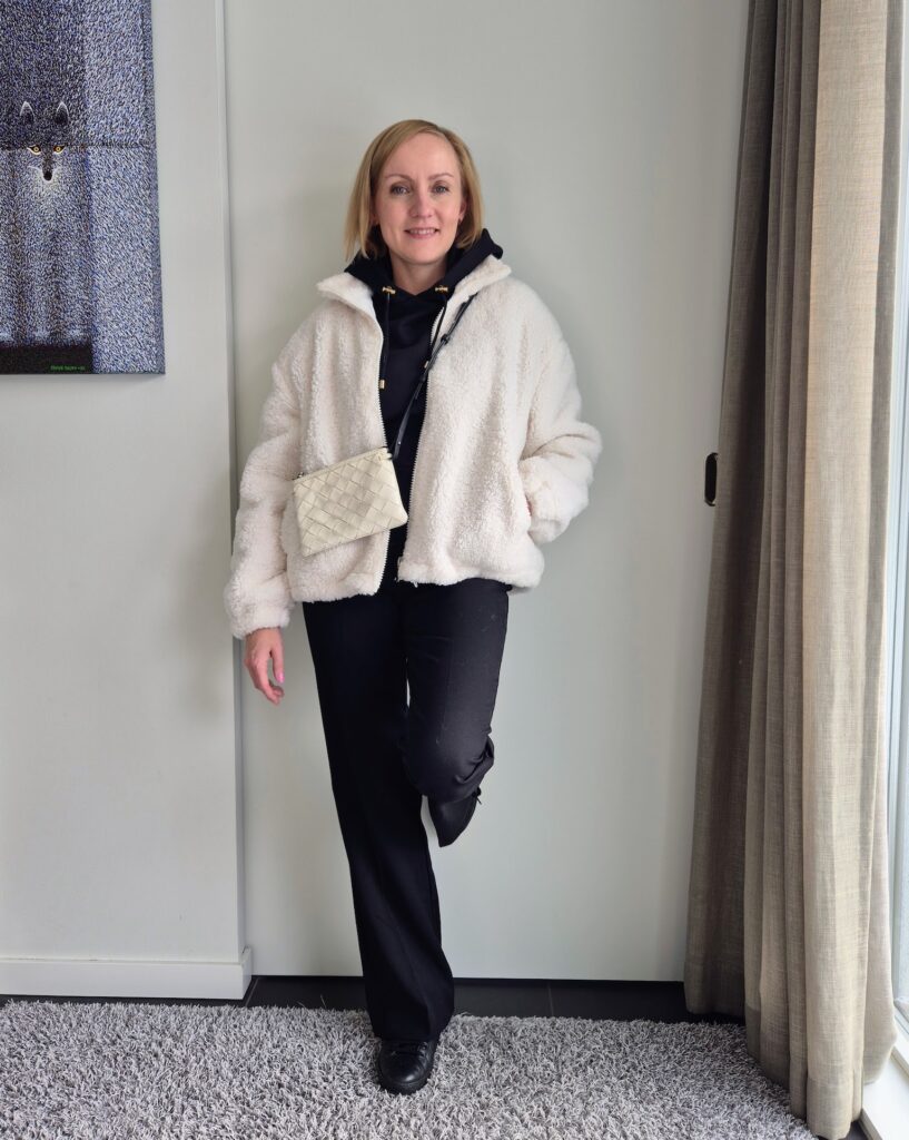 Huppari ja siistit housut, siinäpä oiva pari. Ja mikä tahansa väri käy, kun hupparia valitsee. Kevättä kohden ehkä väriä saisi olla enempi. Itselläni on tämä musta huppari, niin sillä nyt mennään. On sanottu, että on joku tietty ikä, jonka jälkeen huppareita ei pitäisi käyttää. Kas kun en nyt sitä muista, niin voin aivan hyvin kulkea arkena hupparissa halutessani. Ja voin aivan hyvin yhdistää sen kanssa suorat puvun housut.