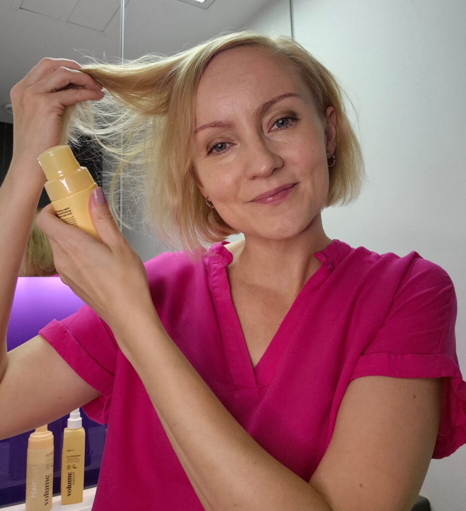 En sinänsä ole ihmeitä kaivannut. Vain keinoa saada hiuksiin volyymia ja siten, että lopputulos kestäisi koko päivän. Juuri kun mietin leikkaanko hiuksia vielä lyhyemmiksi, laitanko hiustenpidennykset (en millään kyllä jaksaisi) vai mitä tekisin, sain mukavia uutisia, että saisin valita tanskalaiselta hiustenhoidon asiantuntijalta Hairlustilta tuotteita kokeiluun. Ilokseni heiltä löytyi koko tuoteperhe tuuheamman tukan perään haikaileville. Näin päädyin käyttämään Volume Wisard -hiustuotteita.