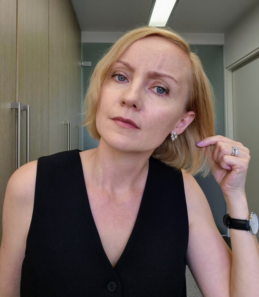 Jo kuivatessani tukkaani suihkun puolella, huomasin eron aiempaan. Olihan se paksumman oloinen heti. Nyt kun sen saisi konkretisoitua nätiksi kampaukseksi, joka kestää päivän menot mietin siinä kuivaillessa.