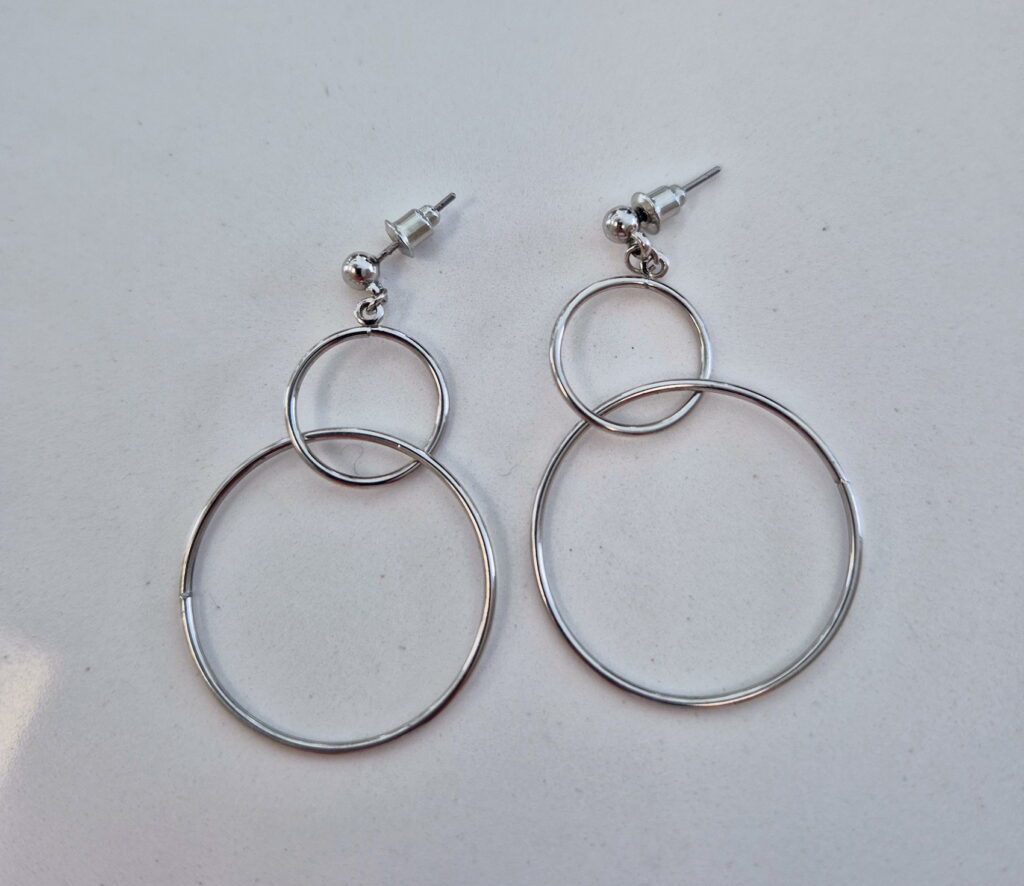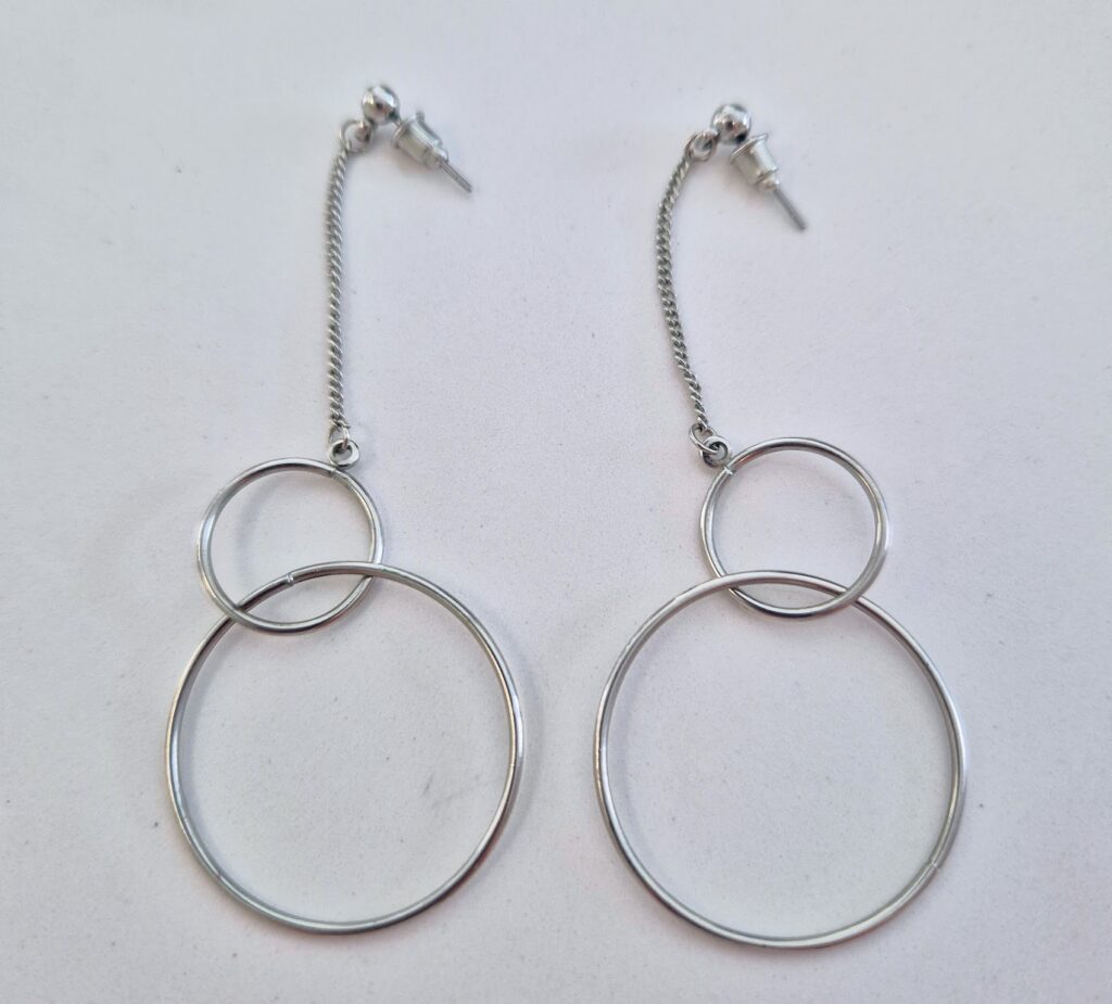 Korvikset ovat vanhat ja jonkin sortin rihkamaa, joten tajusin, että näitähän voi helposti tuunata ihan itse. Irrotin tuon ketjun tuosta välistä ja ähelsin pienen pienet metallirinkulat uudelleen kiinni, jotta koru pysyy kasassa. Pienet pihdit olisivat olleet valtavan näppärät, mutta eihän niitä tähän hätään mistään löytynyt. Nyt lyhyempänä mallina nämä taas miellyttävät omaa silmää ja tänään ovatkin käyttöön päässeet.
