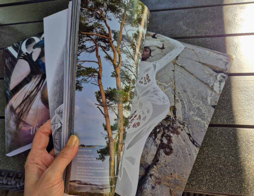Joka toinen kuukausi ilmestyvä englanninkielinen Vogue Scandinavia lupaa tarjota kauniita muotikuvia, haastatteluita, kauneutta ja kulttuuria pohjoismaisella otteella. Muutama suomalainenkin on osa Voguen tiimiä, ja lehden pääkonttori on Tukholmassa. Skandinaavinen muoti on suosiossa maailmalla, niin luulisi lehden kiinnostavan Pohjoismaiden ulkopuolellakin. Sitä en tosin tiedä missä kaikkialla lehti on myynnissä.