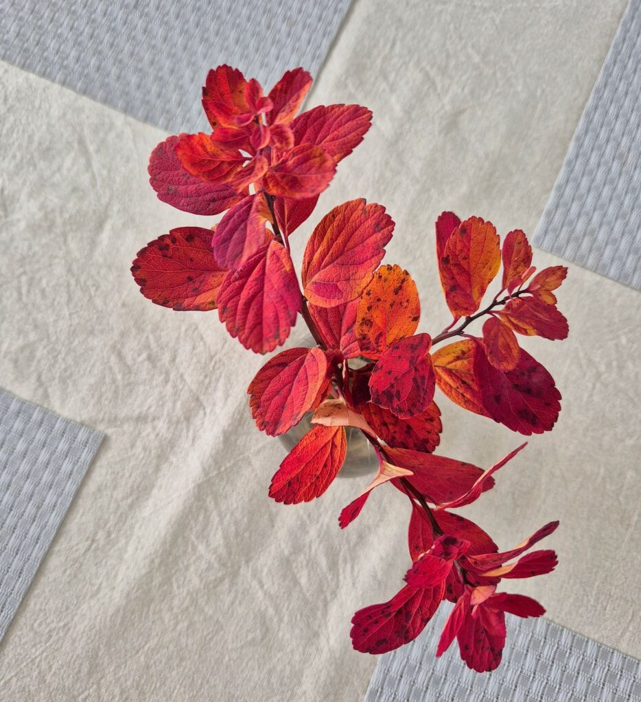 Jos pikkaisen liioittelen, niin ihan kuin yhdessä yössä pam, vihreät angervot pihassamme muuttuivat punertaviksi. Kaksi yötä ei ehkä ole edes liioittelua. Eräänä aamuna silmiä availlessa havahduin upean punaoranssiin näkyyn, joka oli laskeutunut pihaan. Kaunis osa syksyä eli ruskan sävyt ovat täällä. Sitten kun ne lehdet tippuvat alkaa ankea taival, ennen kuin valoa tuova ensi lumi on täällä.