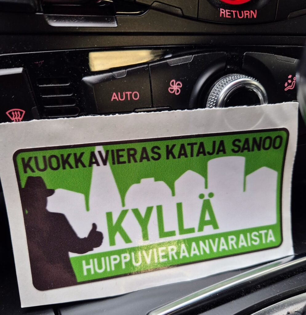 Mutta minäpä en (tällä kertaa) vetäissyt. Muistan, että oli vaikea muodostaa ihan normaalia lausetta, koska alkoi ihan kamalasti jännittää. Se kamera siis. Ei Janne tai mukana olleet mukavat pojat. Nimittäin he olivat tosi kivoja, ei haitannut yhtään heille änkyttää siinä. Kyytiä pyysivät siis ja sen tarjosin. Voin kertoa, että pojilla oli ahtaat oltavat auton takapenkillä lasten istuimen viedessä ison siivun tilasta.