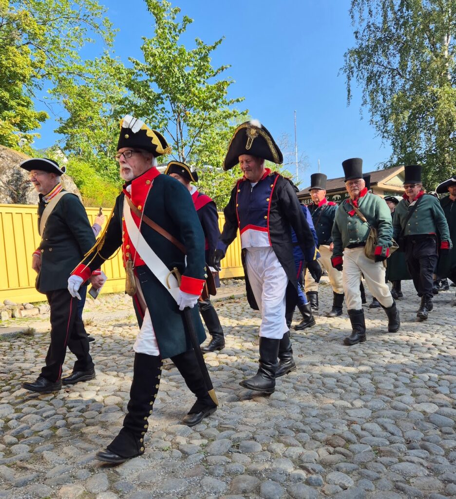 Olin ajatellut etukäteen, että taistelunäytös lienee lyhyt ja siinä muutama tykinlaukaus ammutaan menemään. Mutta mitä vielä. Sotilaita eri saarilla, vesillä ja linnan muureilla, tykit ja aseet lauloivat. Kuulosuojaimia suositeltiin, korvatulppia jaettiin. Tykin laukaukset olivat todellakin korvia särkevän kovia, maa täräji ja savua riitti. Oli jännä tunnelma ja yleisöä oli tuhatmäärin. Hetkeksi pääsi sodan keskelle 1700-luvulle. Eikä kateeksi käynyt sen ajan elämää lainkaan.