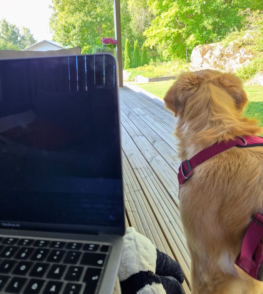Alkukuusta meillä oli myös hoitokoira muutamia öitä, joka innosti lapsia kovasti. Koira antoi silloin lähdöt pihasta niin oraville kuin rusakoille. Orava tuntui tosin vain nauravan sille. Etätyöpäivinä koiruudesta oli seuraa ja kauniita päiviä ei silloin vietetty sisällä. Hellepäivät syyskuussa tuntuivat aika uskomattomilta.