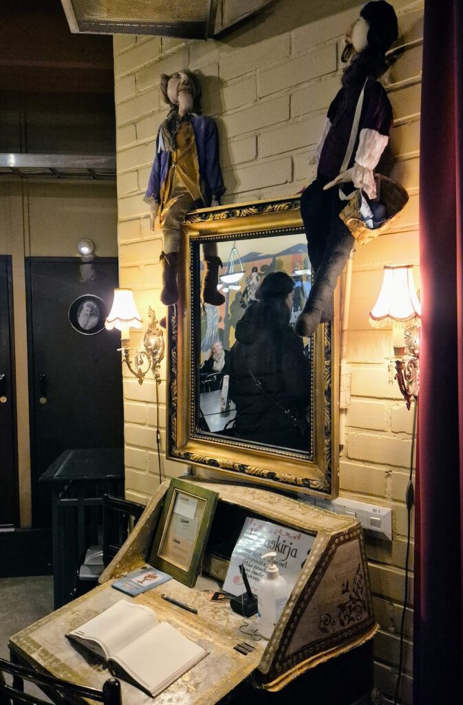 Siisti talvipukeutuminen on välillä haaste. Sitä kun saattaa alkaa paleltaa, jos ei kulje michelin-ukkona paikasta toiseen. Kerrospukeutuminen auttaa paljon ja itselläni on aina yllä lämpimät villapaidat, lämpösukat ja farkkujen alla lämmittävä kerros, jos en ole toppavehkeissä. Myönnän, että turhamainen minä valitsi Jyväskylän reissulle farkut ja suorat housut, en toppahousuja, jotka kulkivat kyllä käyttämättöminä matkalaukussa mukana. Kerrostamisesta huolimatta erityisesti la-iltana oli vilakka kävellä takaisin asunnolle, kun ensin oli istuttu lämpimässä teattarissa, syöty mahat pullolleen ja piipahdettu pubissa.