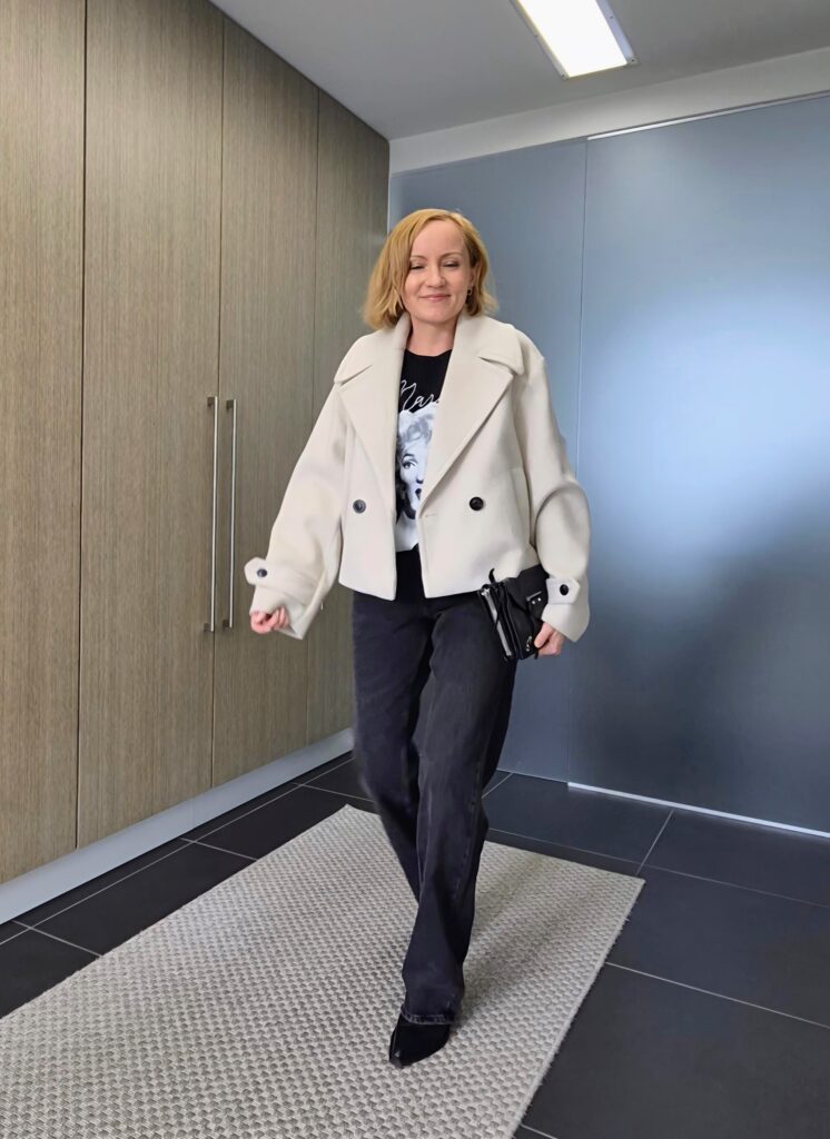 Musta-valkoiset asut ovat mieleeni keväisinkin. Mustat farkut, printti t-paita ja valkea laatikkomallinen takki yhdessä ovat yksi suosikeistani. Rento, ajanmukainen asu ja sitä voi käyttää monissa jutuissa.