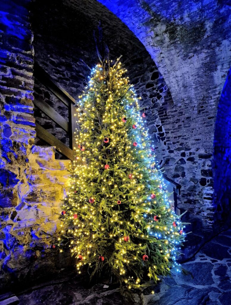 Kyllä kelpaa tällä viikolla käyskennellä Olavinlinnassa niin sisällä kuin ulkona. Olavinlinna täytti 550-vuotta tänä vuonna ja sen kunniaksi juhlavalaistus tuo väriä ja loistoa tähän joulukuun harmauteen. Sitä lunta kun ei valitettavasti näy ei kuulu. Valaistu Olavinlinna ja hieno valotaide linnan piha-alueella olivat todellakin omiaan piristämään ainakin minun joulukuun alkua.