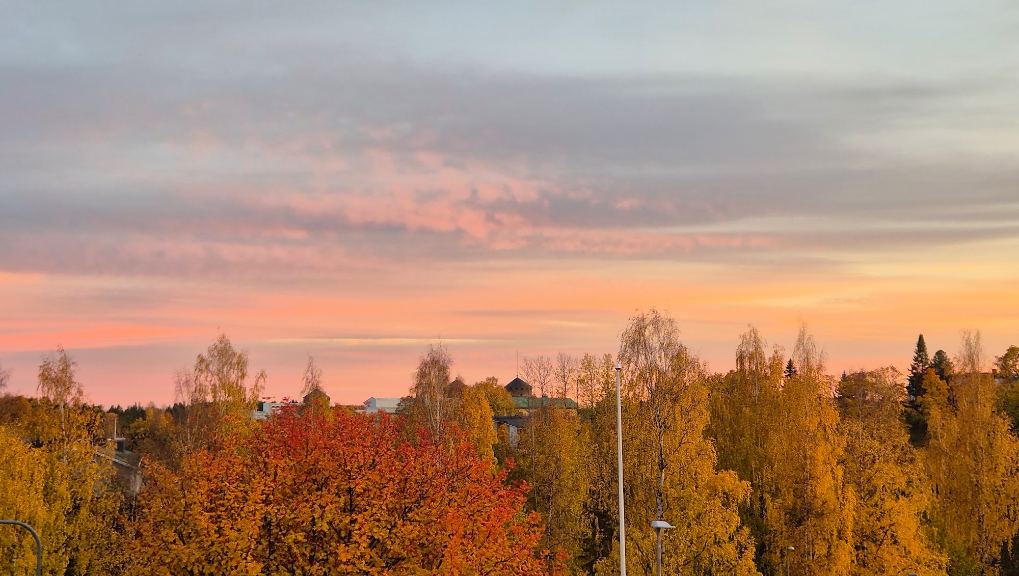 Kävin lauantaina tuulettamassa vähän päätä lenkillä samalla ihaillen ruskaa. Niin kauan kuin sitä kestää. Muuttolintuja meni vielä kovaäänisesti yli kaakattaen aurassa. Oli rauhallista ja kaunista.