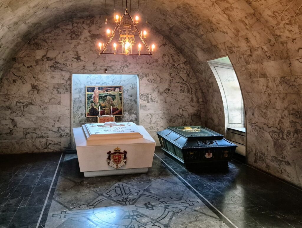 Ai niin, ja mausoleumikin oli. Sarkofageissa pötköttivät kuulemma Norjan edesmenneet kuninkaat Haakon VII ja Olavi V puolisoineen.
