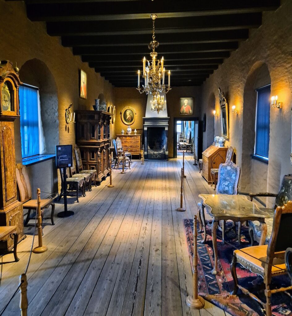 Maksoin 100 kruunua, noin 10€, jotta pääsin tutustumaan linnan sisälle ja se olikin tosi hyvä juttu. Linnassa oli monia erilaisia saleja, isoja ja komeitakin, kultauksia ja vanhoja huonekaluja, vankityrmä, kummitustarinoita, haarniskoja, taitavasti tunnelmaa korostavaa valaistusta. Oli siis aivan ihana kävellä rauhassa tilasta toiseen, välillä kapeita käytäviä, tiukkoja portaita. Melkein koki joutuvansa ajassa taaksepäin.