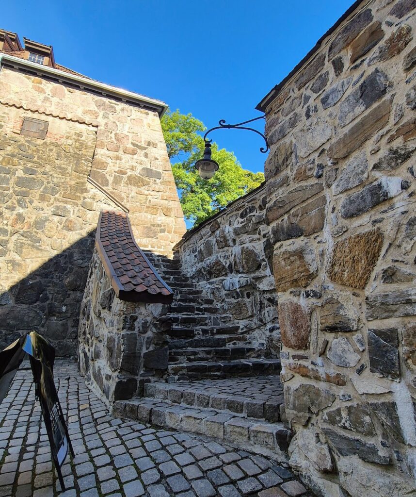 Akershusin linnoituksesta lyhyesti mainittakoon, että se on ollut tärkeä puolustukselle ja sitä on ajan saatossa piiritetty monta kertaa, ikinä ei ole valloitettu. Linnoitusta alettiin rakentamaan 1200 -luvun lopulla. Vertauksia Turun linnaan luin jostain ja tosiaan jotain samantyyppistä näissä kahdessa paikassa oli.