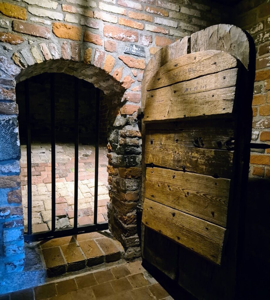 Linnoituksessa oli jonkin verran ahtaita käytäviä ja matalia oviaukkojakin. Voi vain kuvitella millaista siellä on ollut keskiaikaan. Yksi vankityrmäkin oli esillä, linnoitus oli toiminut vankilanakin.