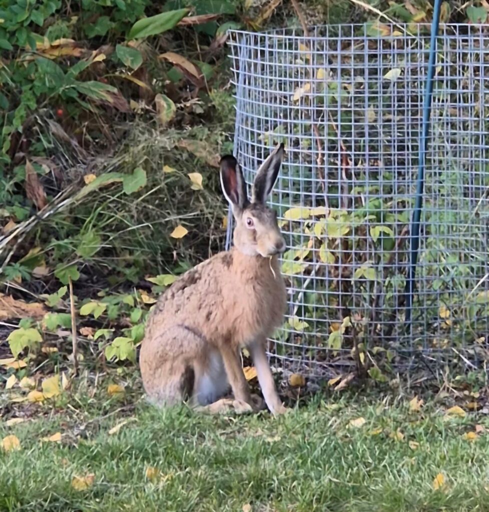 Sain seuraa takapihalle viikolla. Minä naputtelin kannettavaa, tämä nököhammas lyhensi nurmikkoa.