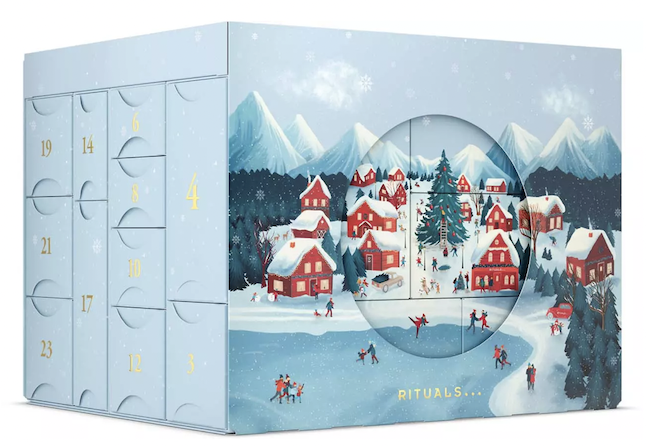 Kauniisti kranssinmuotoinen Ritualsin kalenteri sisältää mm. ihon- ja vartalonhoitotuotteita ja herkullisia huonetuoksuja ja tuotteita rajoitetuista tuotesarjoista. Eksoottiset tuoksut voi tuntea jo tänne asti. *Tästä kalenteriin (Lyko)