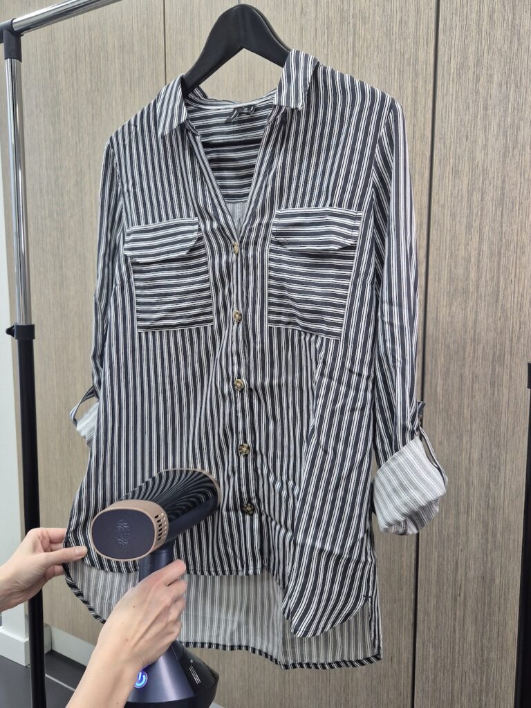 Rypyttömien vaatteiden lisäksi vaatehöyrystin raikastaa höyryllä esimerkiksi varastosta esiin kaivetut takit. Kuuma höyry tappaa bakteerit tehokkaasti ja poistaa hajuja. Tällainen käsittely toisi varmasti lisämyyntiä kirpputorillakin, kun olisi rekit täynnä raikkaita vaatteita. Itse saankin nyt kulkea raikkaissa villakangastakeissa ja olen varma, että pesuvälikin pidentyy tällä laitteella.