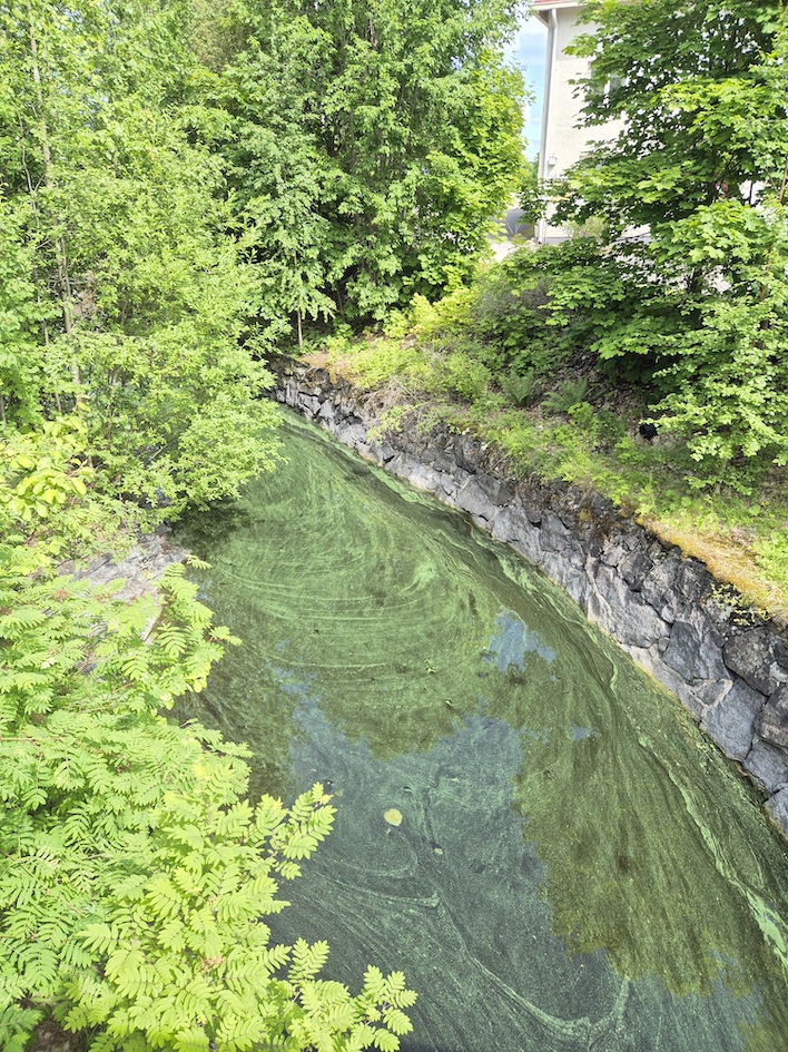 Kesäkuussa sinilevää oli valtavat määrät ja vähään aikaan lapsia ei voinut uimaan päästää. Sinilevä on yleensä kuuman kesän lopputulema, mutta sen näkyminen jo viileän kesäkuun aikana pääsi todella yllättämään. Ihan aluksi kyllä katsoin, että miten on siitepölyä vielä näin paljon veden pinnalla.